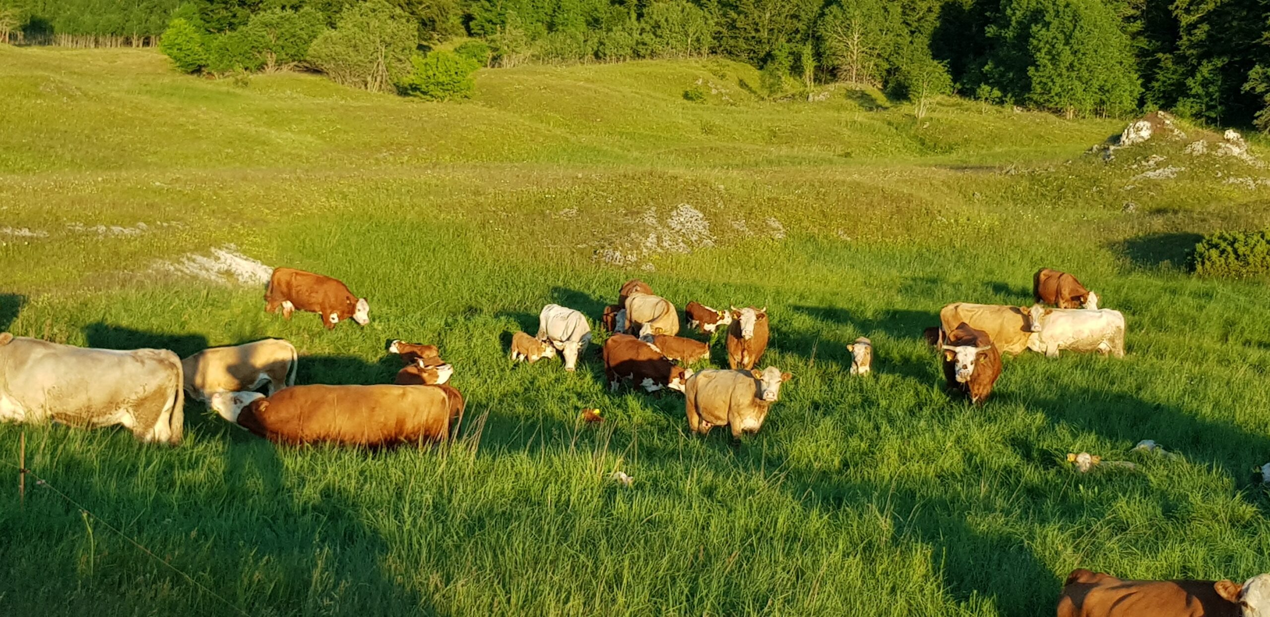 Uzgoj teladi na našem gospodarstvu bazira se na sustavu krava-tele koji je usmjeren na proizvodnju mesa. Krave koje uzgajamo su pasmine limuzin, simental i hereford, dok su bikovi čiste limuzin pasmine. Ova kombinacija rezultira teladima koja imaju visok prisrast u daljnem tovu i dobru otpornost na vremenske prilike. Proizvedena telad djelom ostaju za dalji rasplod na gospodarstvu, dok se najveći dio odvaja za prodaju na tržištu.